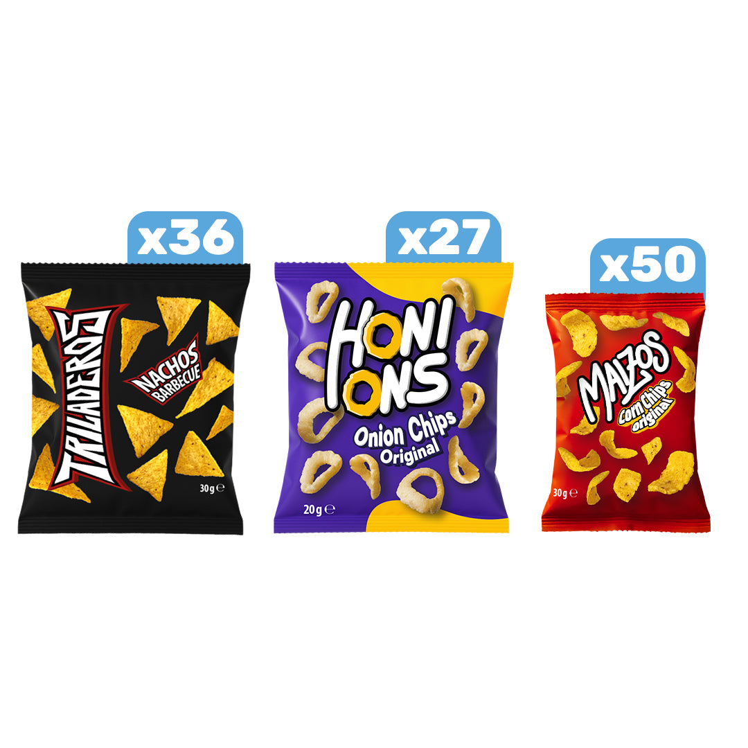 Mit Honors -Zwiebelringen 20 g, Triladeros Nachos Barbecue 30 g und Mail -Mais -Chips Original 30 g geben Ihrem Kunden die Möglichkeit, zwischen der Knusprigkeit der Zwiebel, dem geräucherten Geschmack des Grills und dem authentischen Geschmack von Mais zu wählen. Verpassen Sie nicht die Gelegenheit, zu den ersten zu gehören, die diese gewinnende Auswahl vorschlagen, die bereits online und in den besten Geschäften entvölkert wird. Bestellen Sie nun das Bündel und machen Sie den Unterschied in Ihrem Sortiment mit drei unwiderstehlichen und hohen Rotationssnacks!