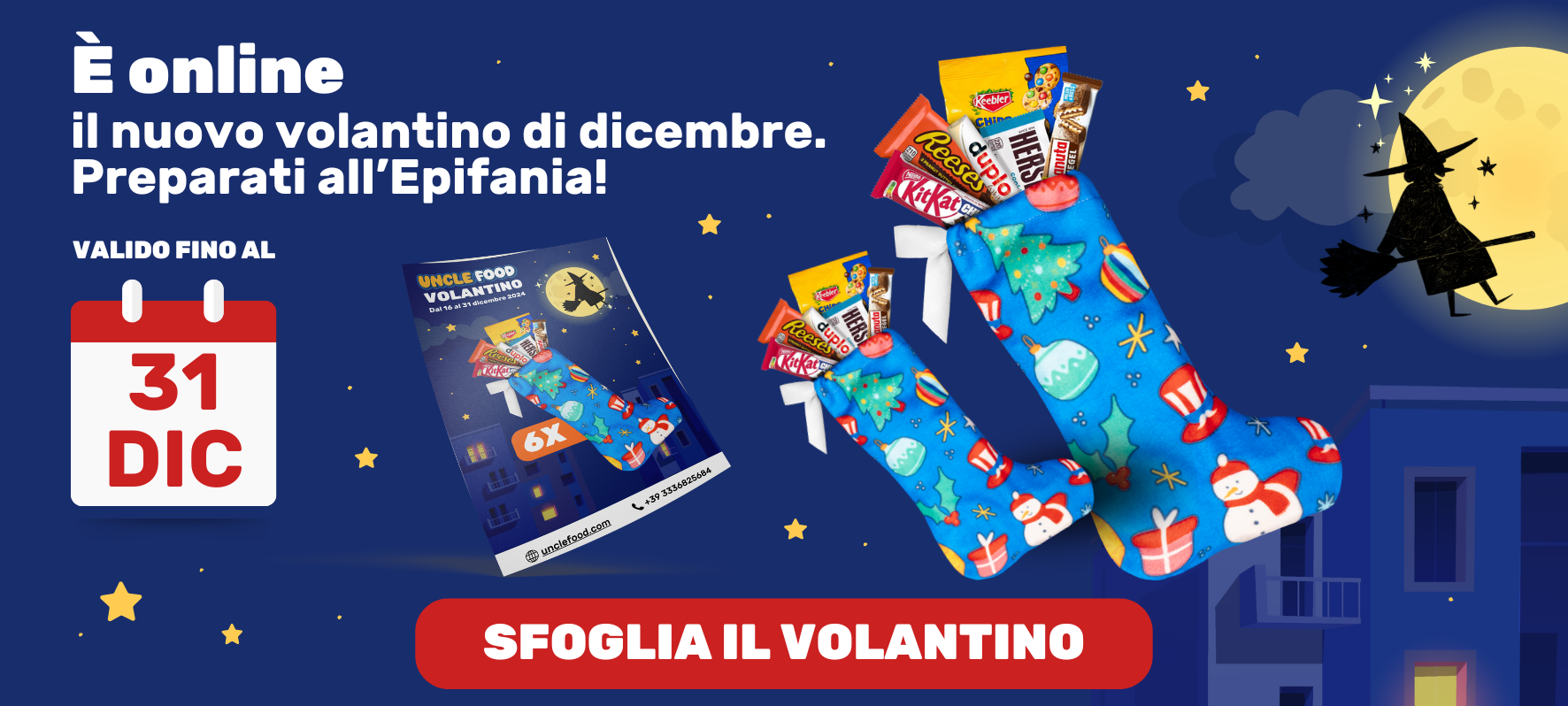 Con Uncle Food, puedes satisfacer a tus clientes y cerrar la temporada navideña con ventas al máximo. Propón las medias de la Befana compuestas, crea un espacio para el pic’n mix con snacks internacionales y caramelos gomosos y haz de tu tienda el punto de referencia para la Epifanía 2024!