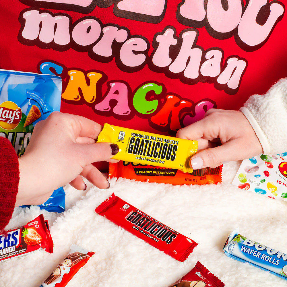 Le packaging en forme de cœur communique à lui seul l’occasion d’achat, rendant le produit parfait pour rayon, comptoir, entrées et corners temporaires. À l’intérieur, l’assortiment mélange snacks sucrés, bonbons et salés iconiques, créant un effet surprise qui augmente la perception de la valeur et stimule le choix immédiat.