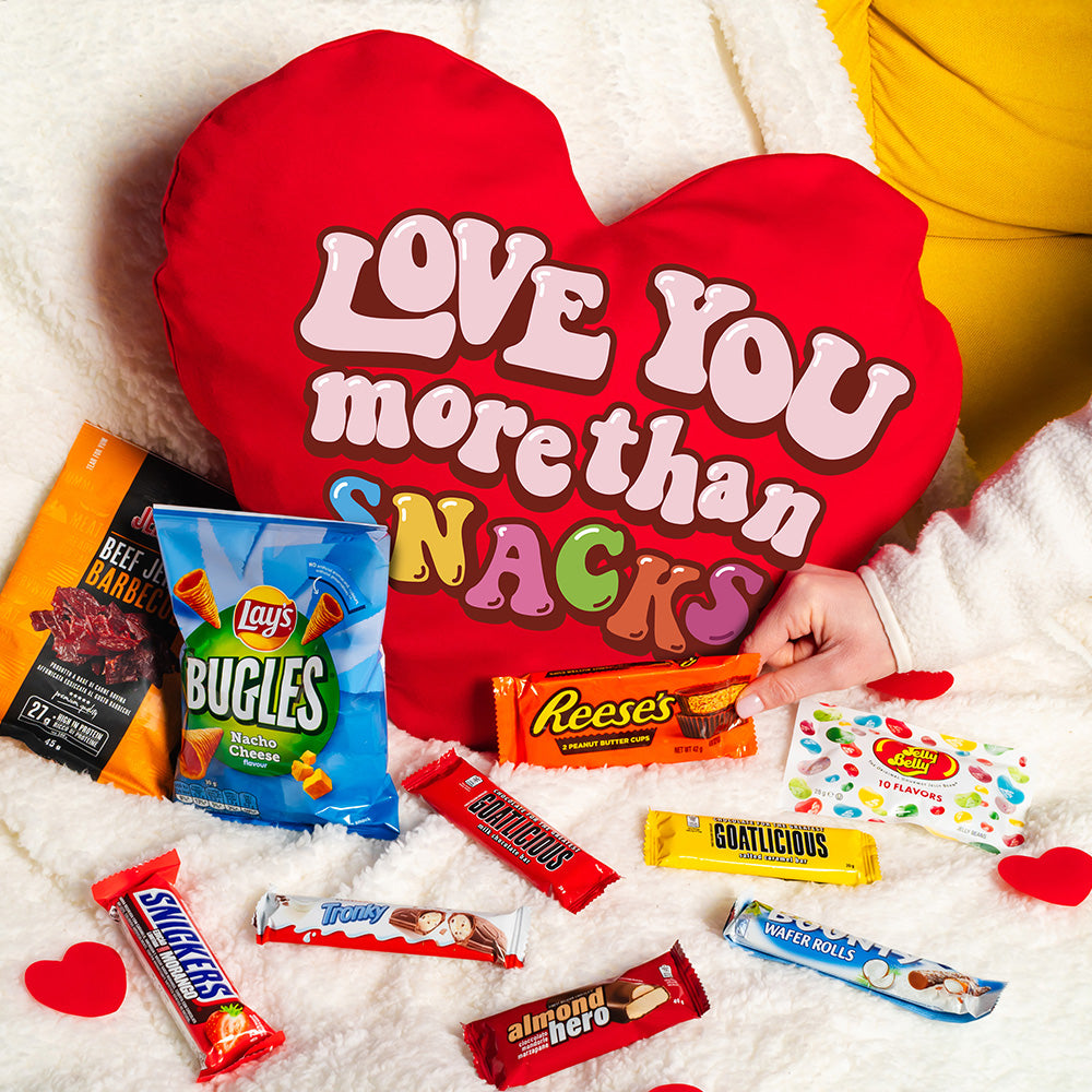 Valentine’s Heart XL, coussin en forme de cœur avec 30 snacks sucrés et salés surprise, c’est un produit saisonnier conçu comme une solution pour ceux qui cherchent un cadeau prêt, accessible et différent des clichés classiques. Le format XL renferme 30 snacks assortis, sélectionnés parmi des marques internationales très reconnaissables et à fort attrait pour le public jeune.